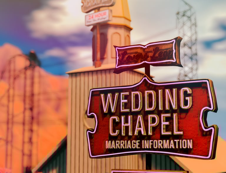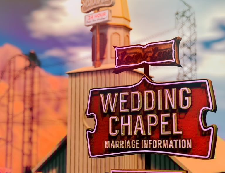 Our Vegas-style chapel is where fast love, neon vows, and bad decisions turn into the best memories — get married by AI Elvis and make it official the fun way.
